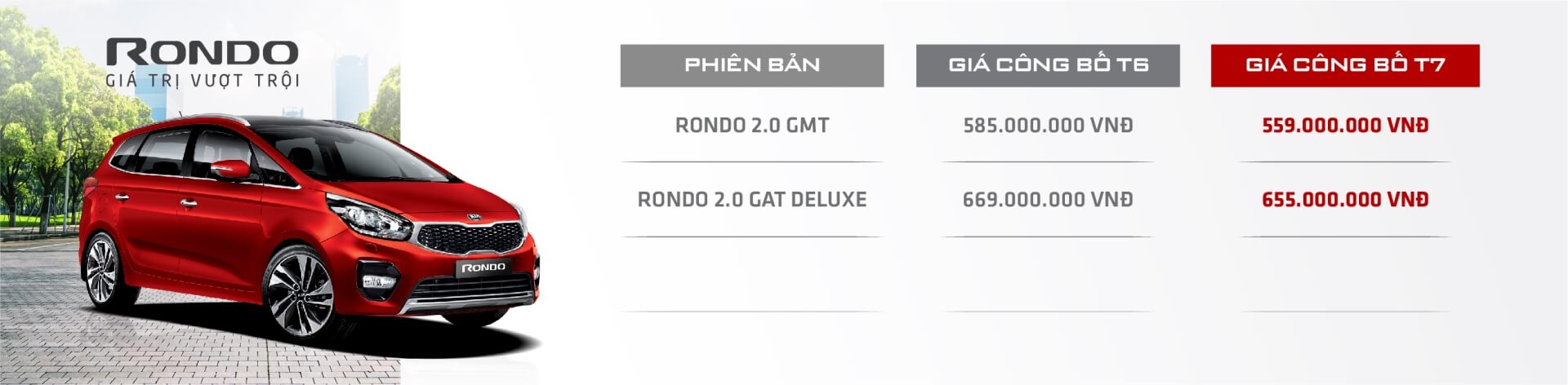 Với chính sách giá mới áp dụng từ 06/7, Kia Việt Nam triển khai “Chính sách 1 giá” trên toàn hệ thống với hơn 75 showroom/đại lý trên toàn quốc, khách hàng hoàn toàn yên tâm mình đã mua được sản phẩm với mức giá hợp lý nhất, không có các trường hợp ưu đãi, giảm giá nào ngoài mức khách hàng đã được biết thông qua truyền thông rộng rãi.